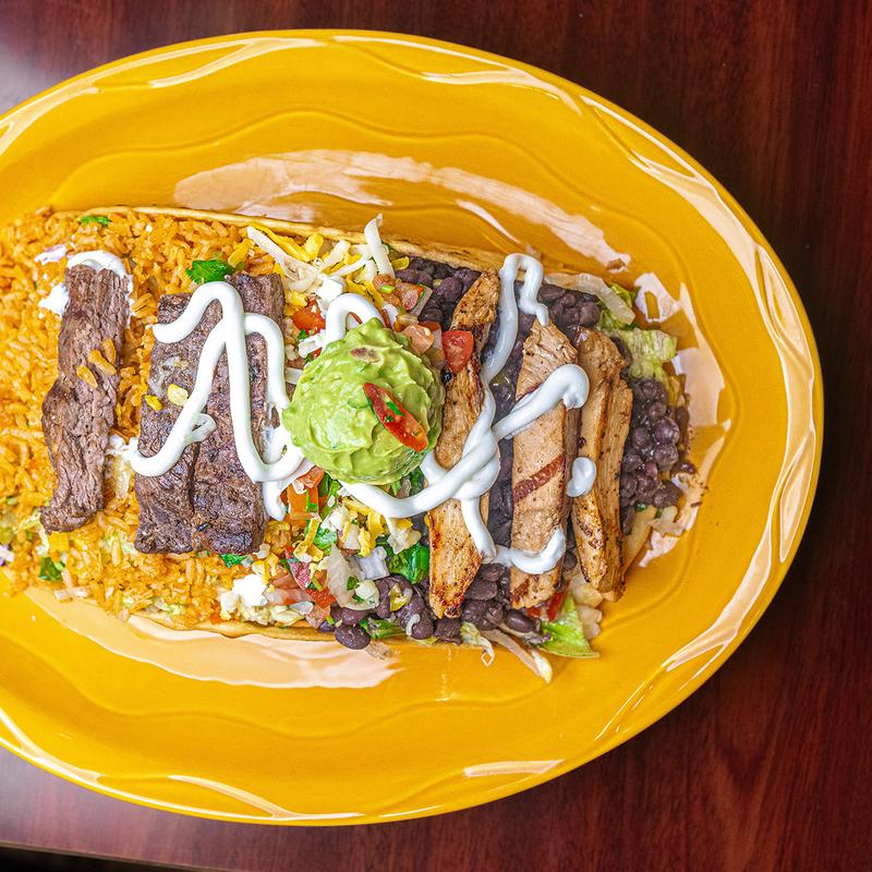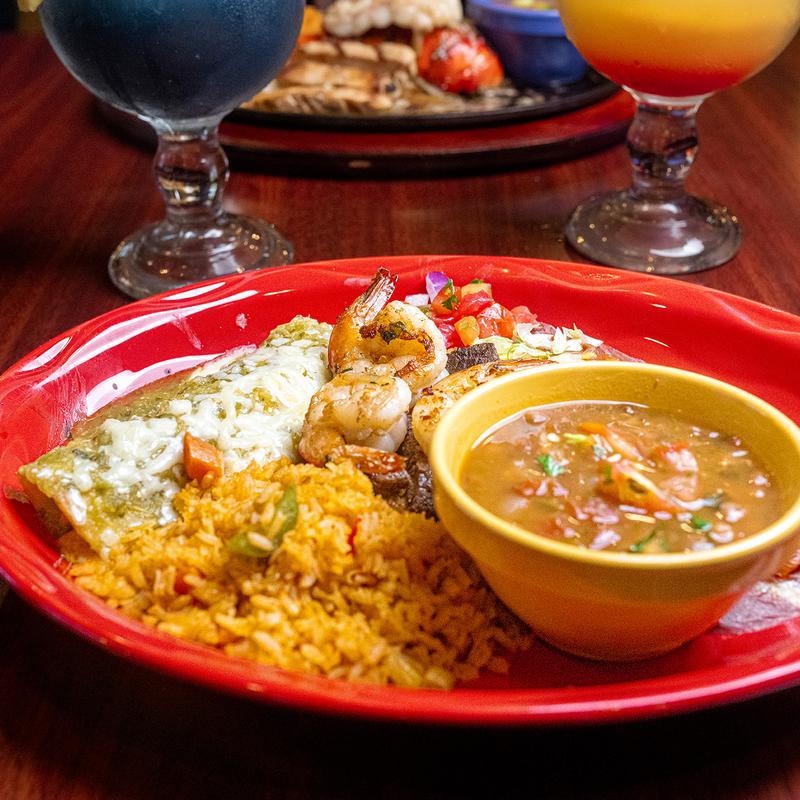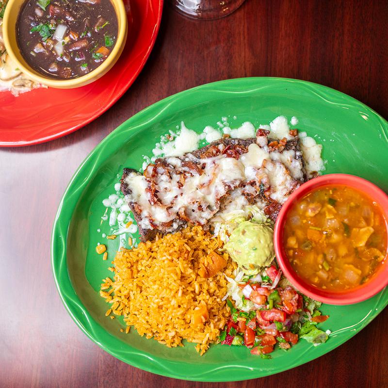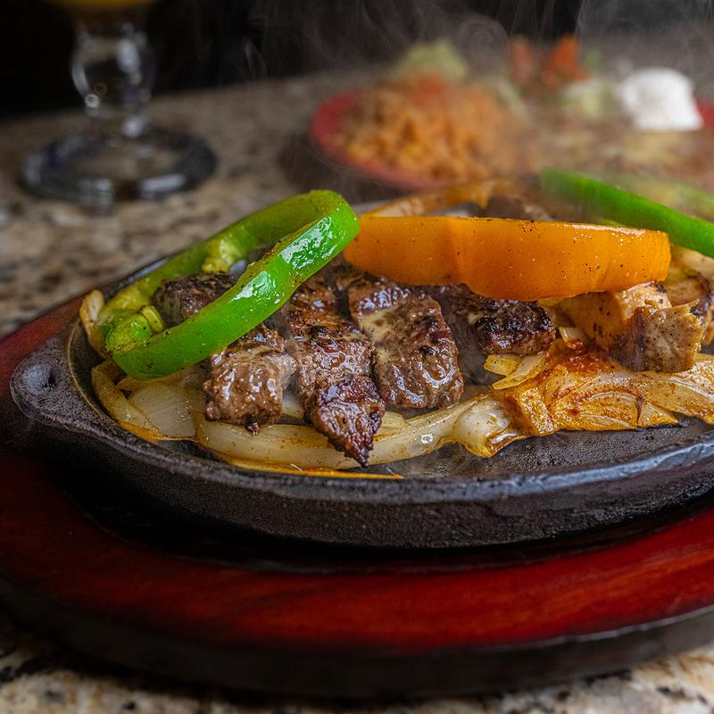 All our sizzling fajitas and parrilladas are served with pico de gallo, guacamole, sour cream, rice, refried beans or charro beans, corn or flour tortillas. You may substitute beans and rice for vegetables on any dish for $1.00