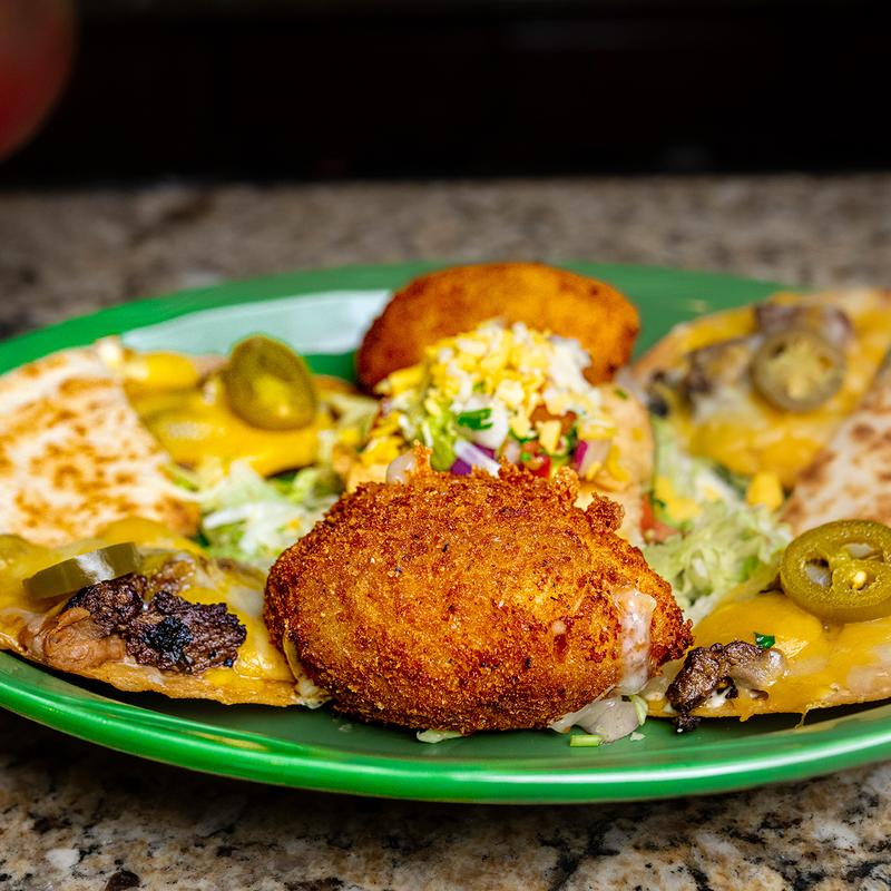 Sauces $1.25: Green Sauce (Green tomato, cilantro, jalapeno, avocado, and sour cream) | Salsa (All of our salsa is prepared fresh...no canned tomatoes) $1.49 each (non-refillable) • Appetizer Sampler (Four fajita beef nachos, two chicken flautas, two stuffed jalapenos and two mini quesadillas served with our spinach dip and ranch $16.99